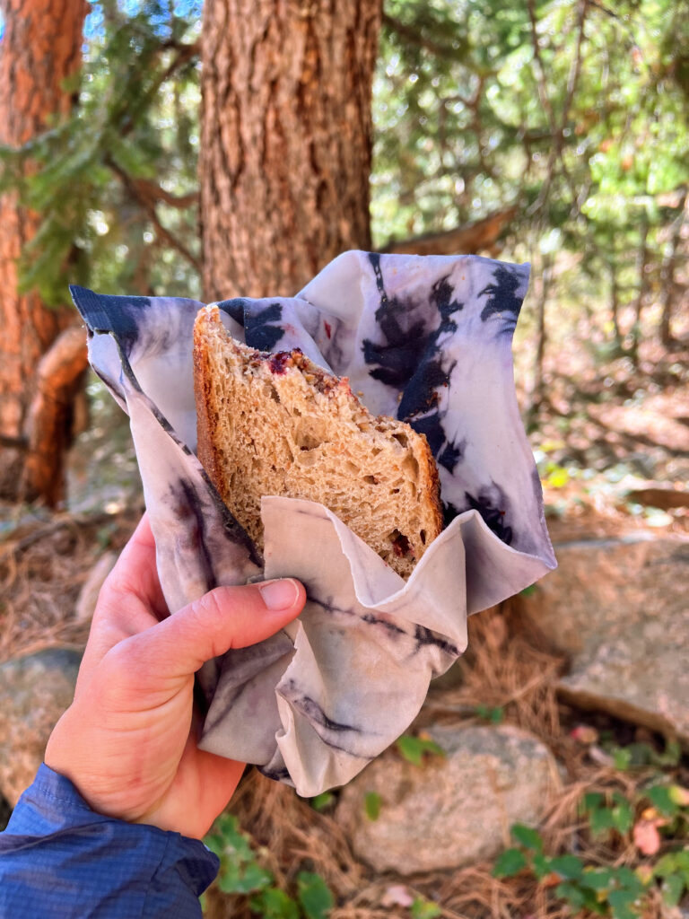 One of the best ways to avoid trash on our trails is to not carry it out in the first place. Employing reusable non-toxic, biodegradable and breathable beeswax snack wraps is a convenient, planet-friendly solution. Beeswax is a naturally occurring byproduct sourced from honeybees. It is anti-bacterial, anti-fungal, and anti-microbial, and when applied to a piece of fabric, beeswax creates a moldable, foldable wrapper. Simply warm it with your hands and then pinch to naturally seal the edges.