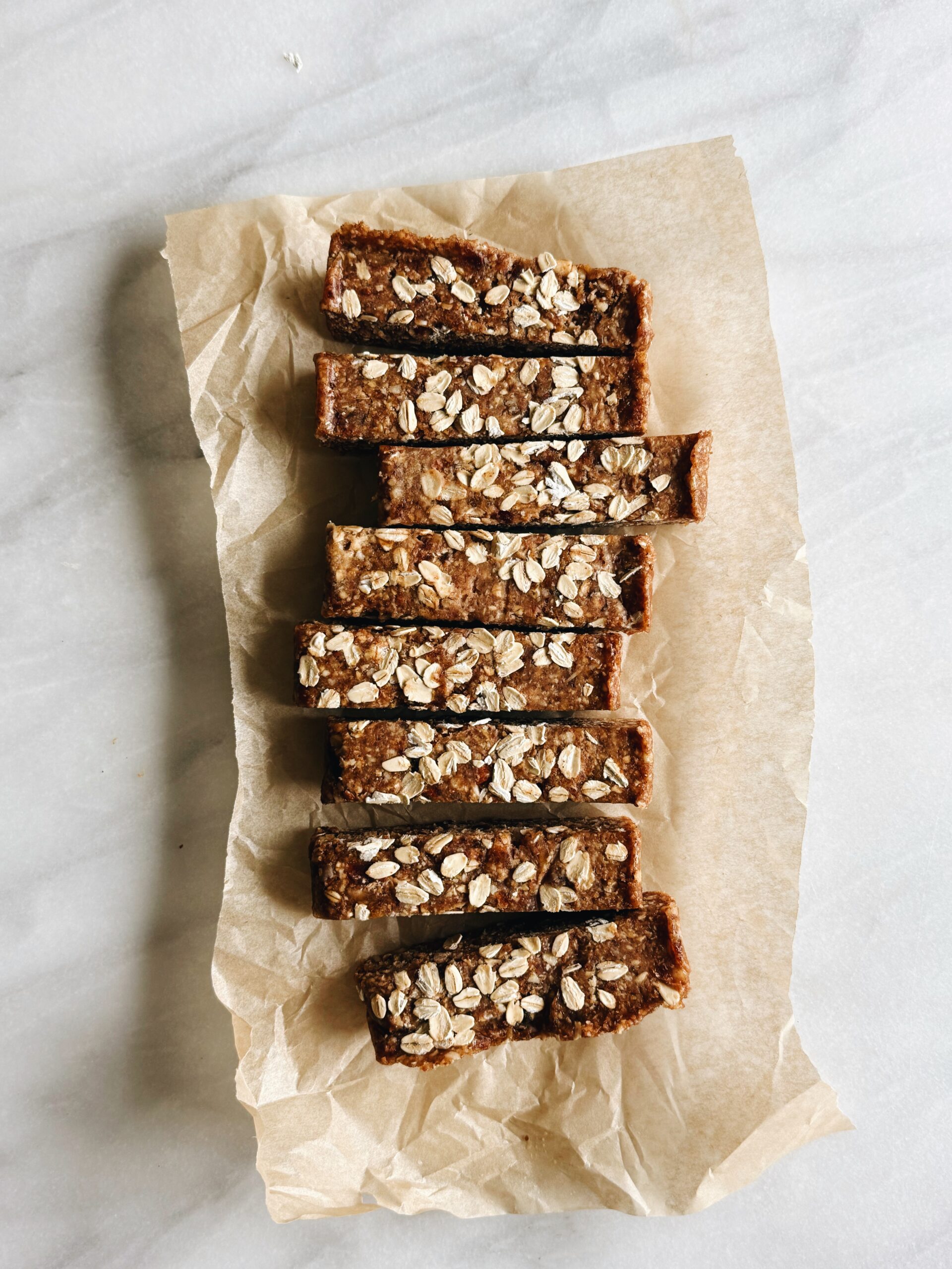Unlike other blender bars or energy truffles that you’d find in this library, that are similarly made with a date base, these little bars are packed with warming spices perfect for fall. Nutmeg, cinnamon, ginger. They taste like a chewy little cookie, but they are SO much more power packed than I could ever build a cookie to be. Which means that these bars are a smart little swap for your other trail snacks as the weather shifts.