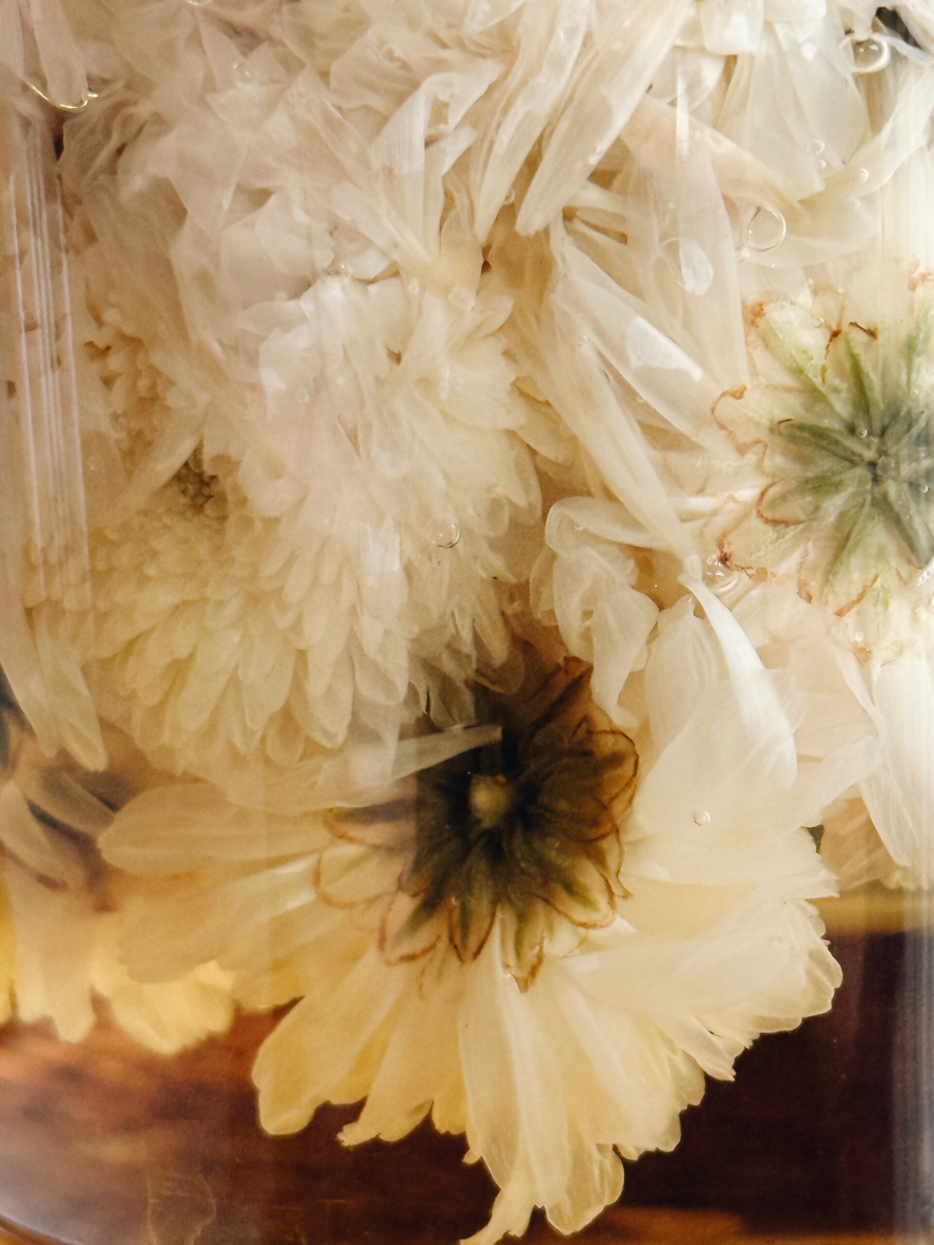 The world of tea and the world of wine are similar in that the specific substance you choose will impact the final flavor, but in the recipe notes below I give you some solid options to use what you have and love, without having to go on a wild goose chase for something when you’re just trying to make a drink! I used a whole-flower chrysanthemum tea which was DIVINE; the tea is beautiful to brew, as the flowers open as they steep. This tea sounds exotic, and it is (kinda) but it’s also very easy to find if you go to a place that isn’t a grocery store shelf to source it. Your local Asian grocery store or an online herbal outlet (like that linked below) will be a great source. Once you have it, it’s a beautiful caffeine-free option to add to your tea nook!