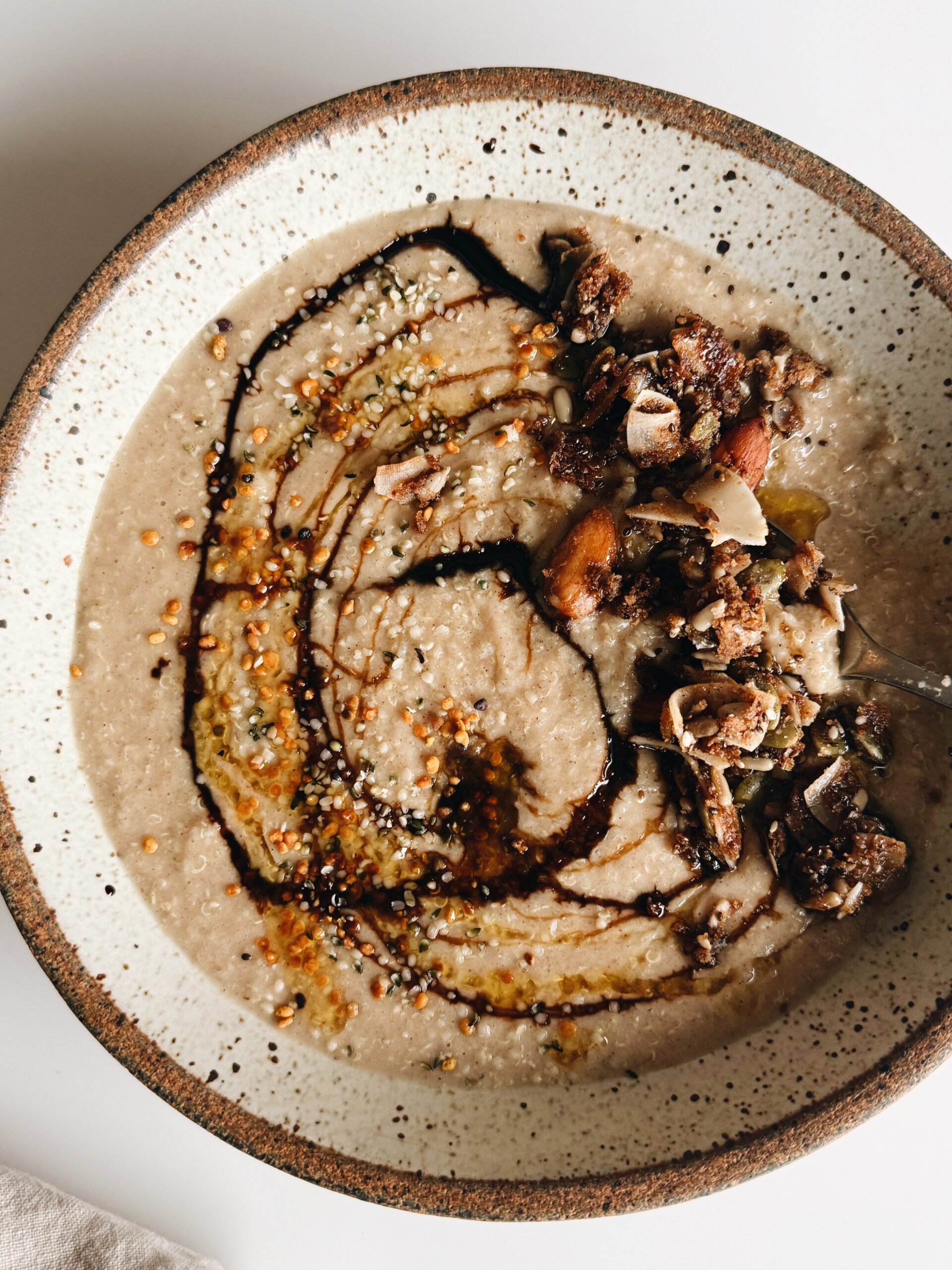 New motherhood is a metabolic rite of passage. You’re not just “recovering” — you’re rebuilding tissue, blood, nerves, hormones, and resilience while actively producing life-sustaining nourishment for someone else. From an Ayurvedic lens, this is a profoundly vata-elevating season: the body is open, depleted, porous, and exquisitely sensitive. What restores it isn’t restriction or optimization — it’s warmth, moisture, mineral density, and consistency. Simple, slow-cooked foods like this Mother’s Porridge do the quiet heavy lifting: replenishing fluids and blood, stabilizing the nervous system, rekindling agni without overwhelm, and laying down ojas — the deep vitality that carries a mother through sleepless nights and long days. This isn’t about “bouncing back.” It’s about being built back stronger, steadier, and well-resourced, from the inside out.
